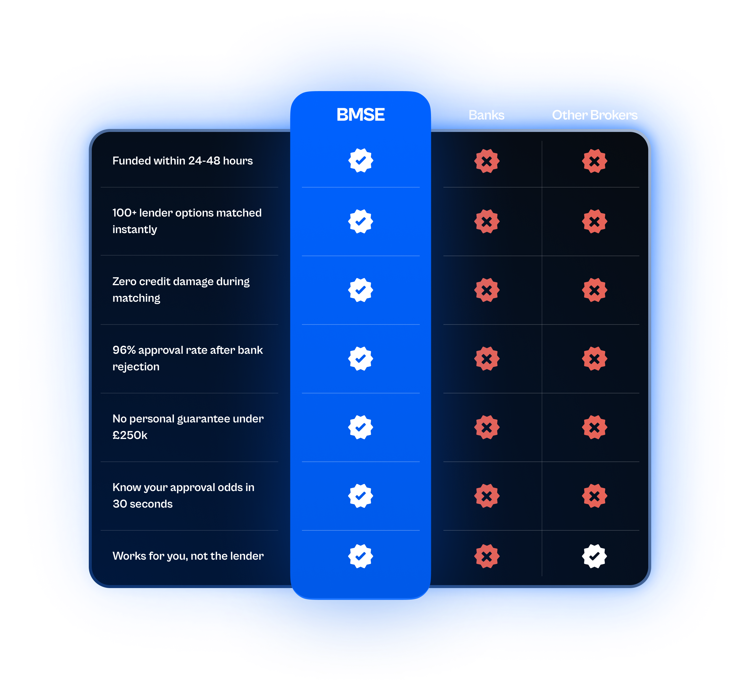 A business making £100k monthly revenue shouldn't collapse over a £40k VAT bill just because their bank moves too slowly. At BMSE, we created a system that gives UK businesses what they actually need: fast, safe access to the funding they need to keep their business rolling.